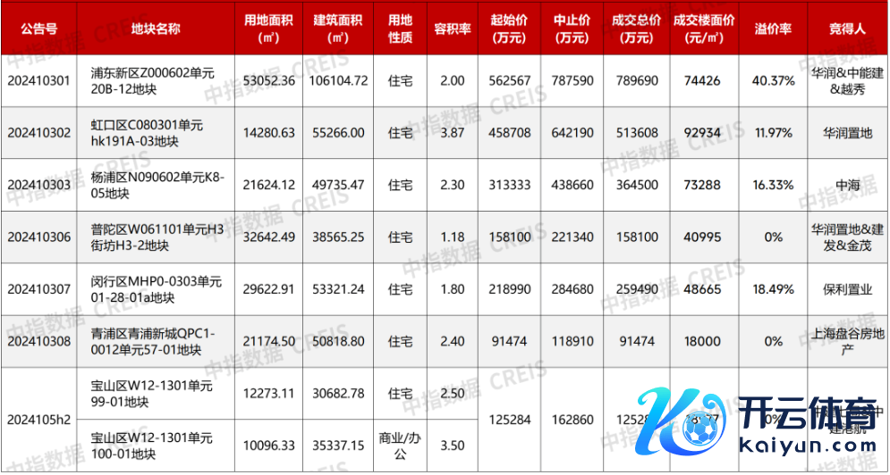 惟有华润置地&中能建&越秀地产长入体、中国金茂&保利发展长入体2家竞买东谈主接收竞报上限值并插足第二阶段竞价。最终,该地块被华润置地&中能建&越秀地产长入体竞得,成交总价78.969亿元、楼面价74426元/经常米、溢价率40.37%,刷新了上海土拍阛阓溢价率记载。