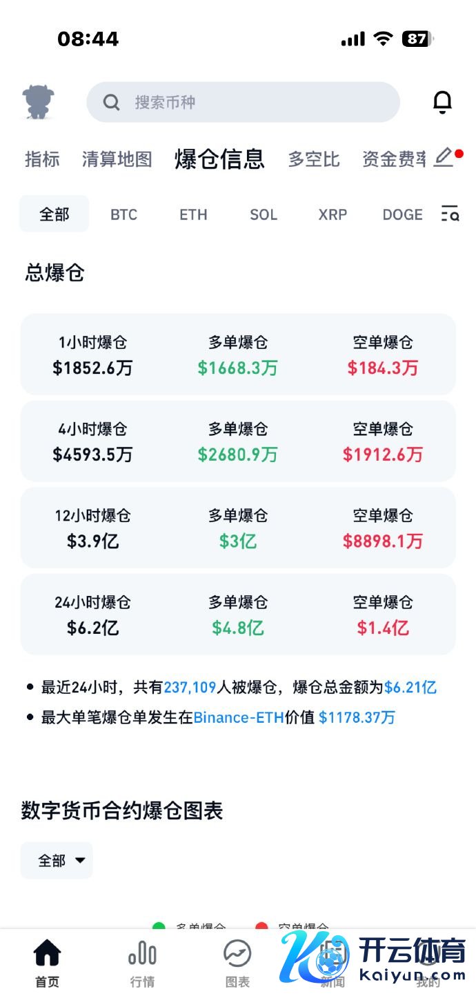 比特币在蓦然破损10万好意思元关卡后,便启动参加下降飘荡。跌4.51%,狗狗币跌6.89%,其他多只加密货币跌幅跳动10%。加密货币突遭重挫,Coinglass数据瓦解,夙昔24小时共有23.7万东谈主爆仓。夙昔24小时加密货币商场全网合约爆仓6.2亿好意思元,其中多单爆仓4.8亿好意思元,空单爆仓1.4亿好意思元。