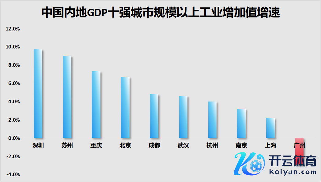 这一工业增速,在十强城市中,雷同位居倒数第一,且是独逐个个范围以上工业加多值负增长的城市。