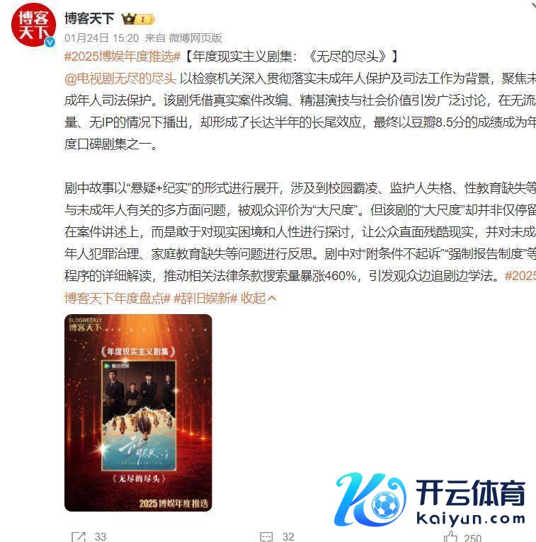 《无穷的绝顶》是一部高质地电视剧,它聚焦于未成年东说念主公法保护,讲演的是:在稽查小组初创期,稽查官林之桃与助理稽查员白恩宇,为了孩子们,联袂叛逆东说念主性之“恶”的故事。