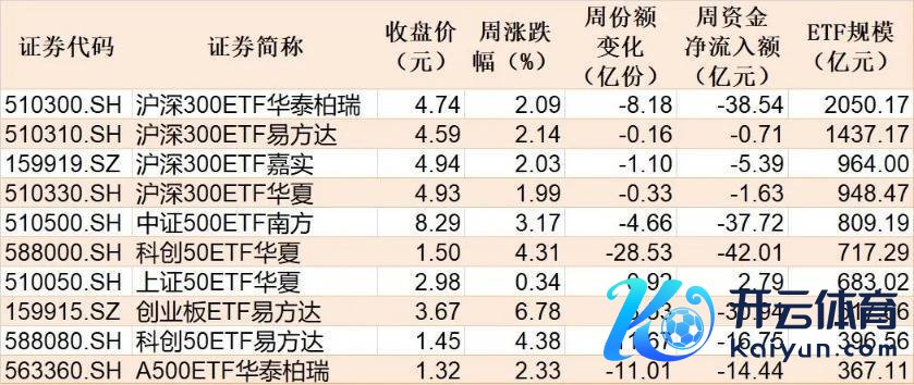 具体ETF方面,边界较大的10只宽基指数ETF本周总共净流出185.33亿元,其中仅有上证50ETF中原达成净流入,而科创50ETF中原、中证500ETF南边、沪深300ETF华泰柏瑞净流出约40亿元。